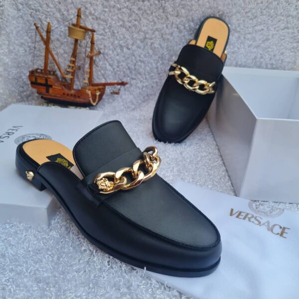 Experience the fusion of style and substance with our Black Leather Versace Men’s Half Shoe. Don’t just wear shoes; wear a statement.