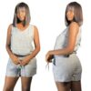 Ladies playsuit is a one-piece outfit that typically combines shorts or a skirt with a matching or coordinating top. Its design aims for comfort, playfulness, and suitability for various casual activities.